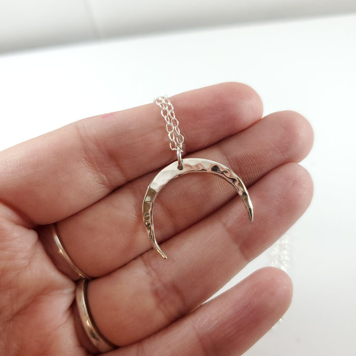 Hammered Crescent Moon Necklace - Sterling Silver Jewelry
