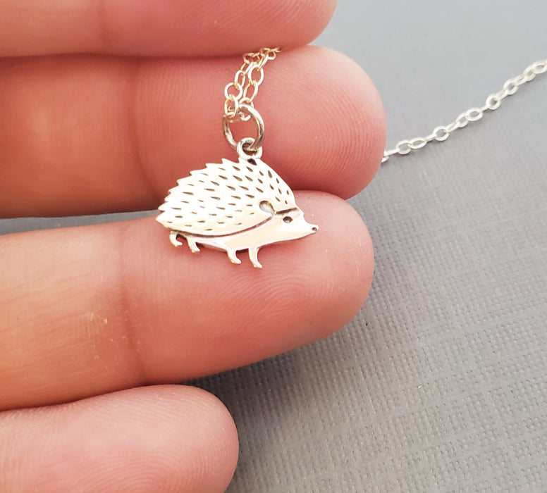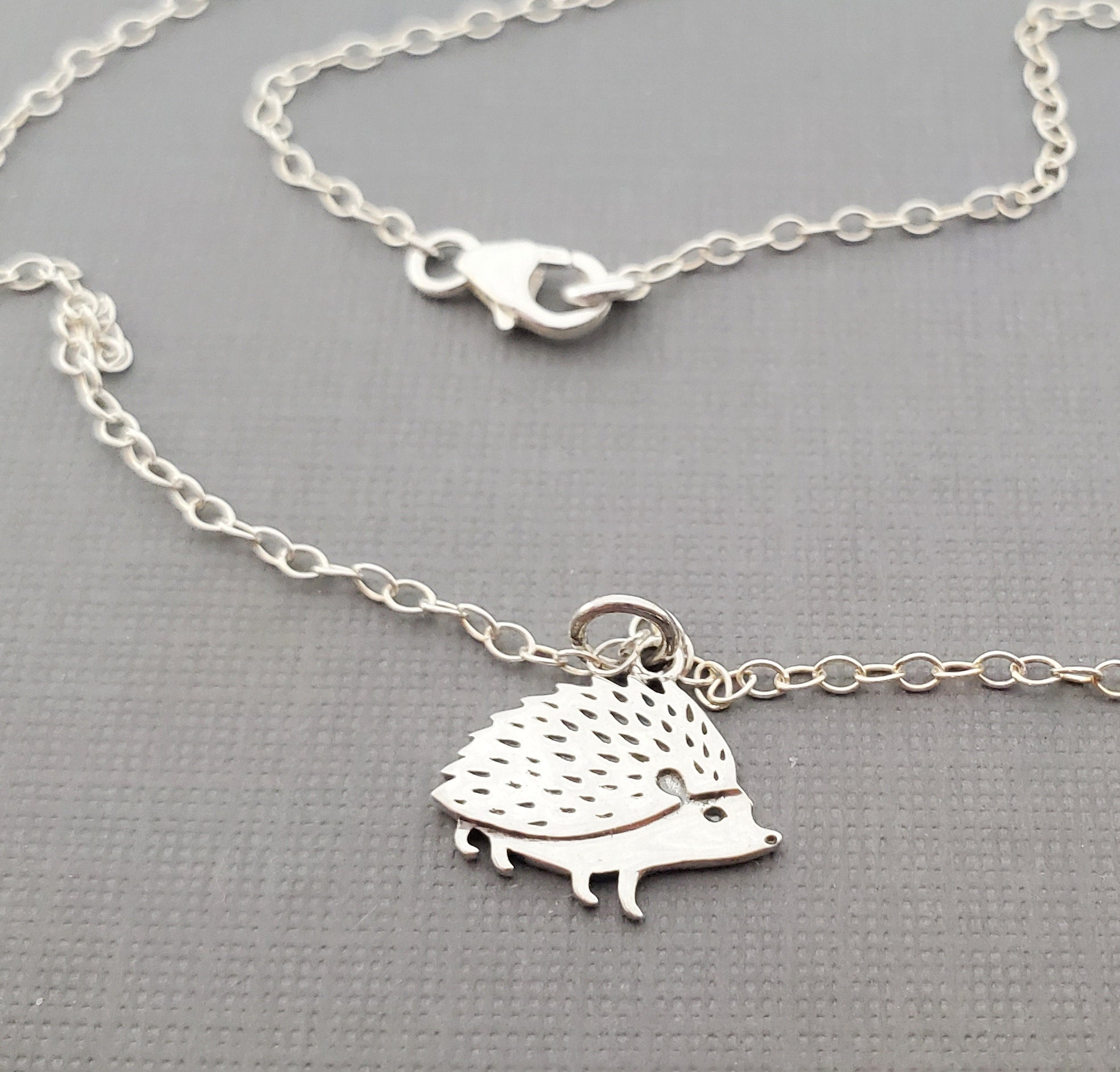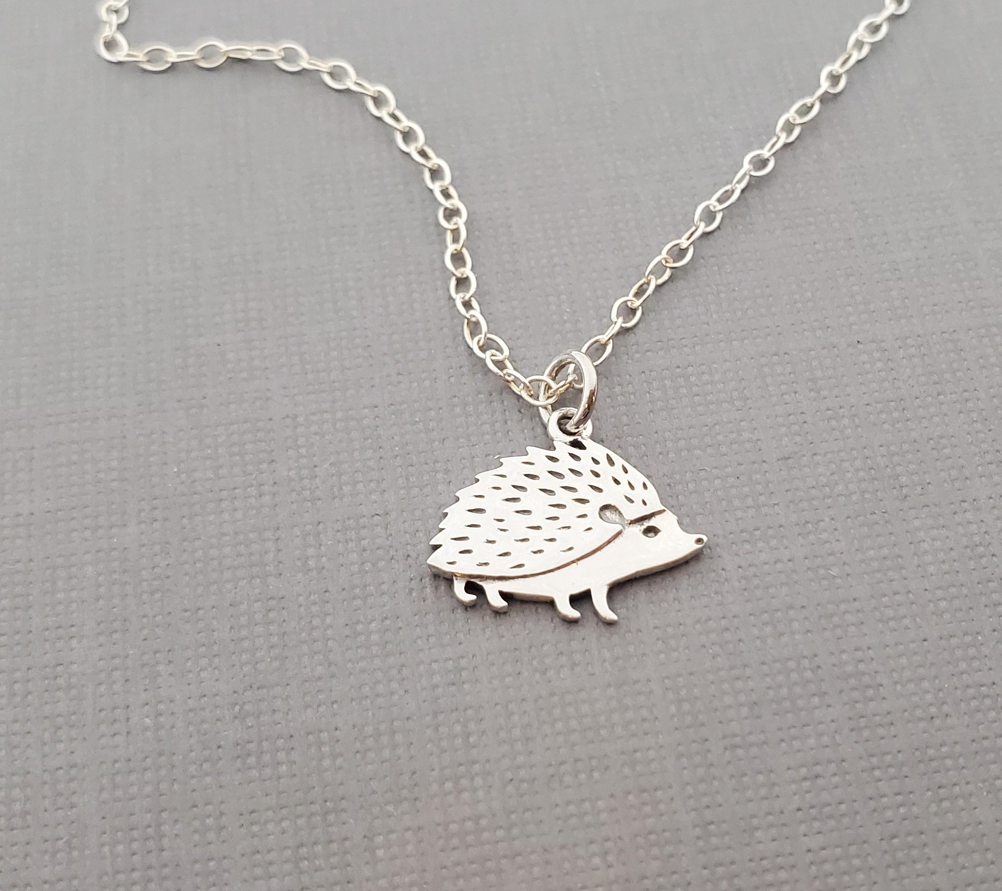 This dainty necklace is handcrafted featuring an adorably detailed hedgehog charm of Sterling silver. Attached to a 16 inch Sterling silver cable chain with secure lobster clasp closure. This necklace is handmade with love in the USA using the highest quality materials for a truly unique gift that the recipient will treasure for years.