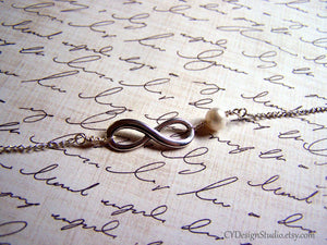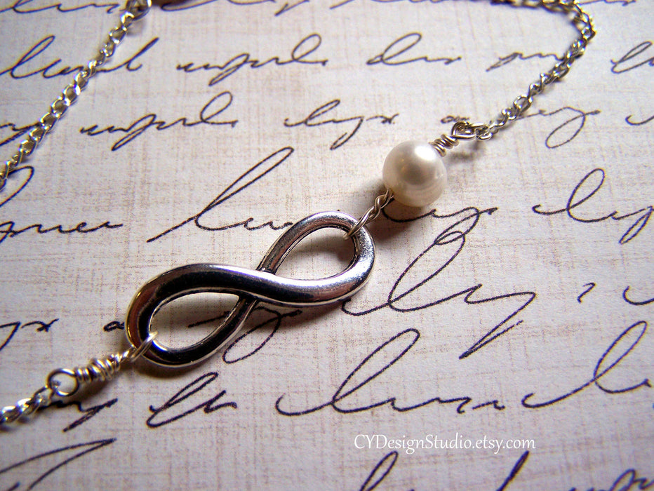 Infinity Sterling Silver and Freshwater Pearl Necklace