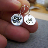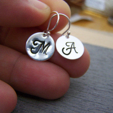 Initial Disc Dainty Hand Stamped Initial Personalized Earrings Custom Jewelry / Gift for Her