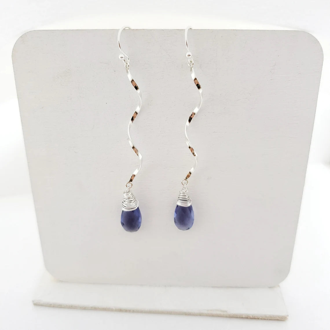 Iolite Quartz Spiral Earrings - Sterling Silver Dangle Earrings
