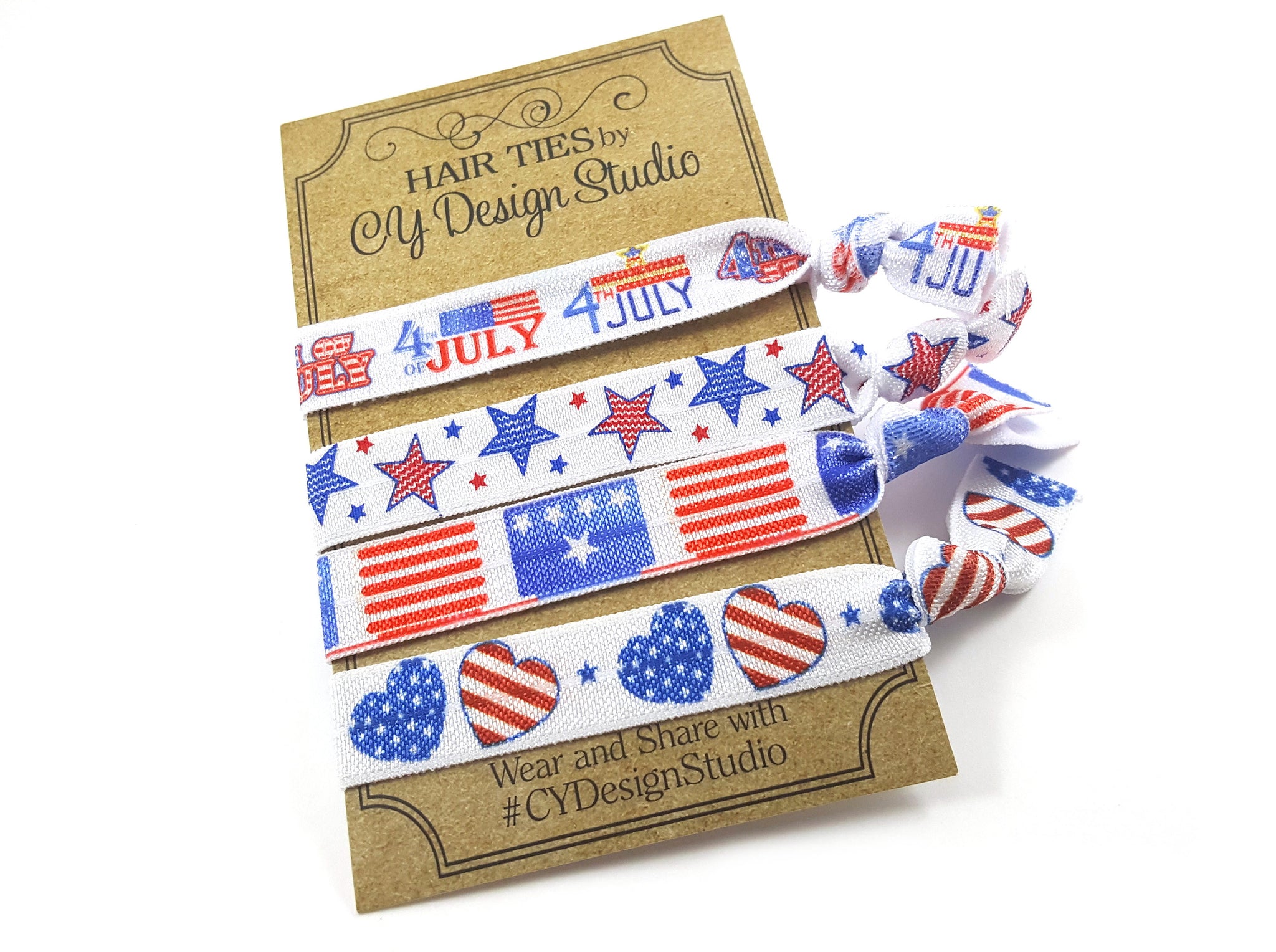Show off your patriotic spirit sporting these July 4th Hair ties! Perfect accessories to tie up your tousles for a day at the beach or a July 4th cook out!