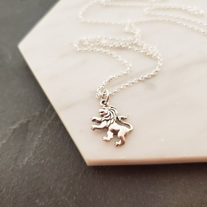 Lion Charm - Sterling Silver Necklace - Gift for Her