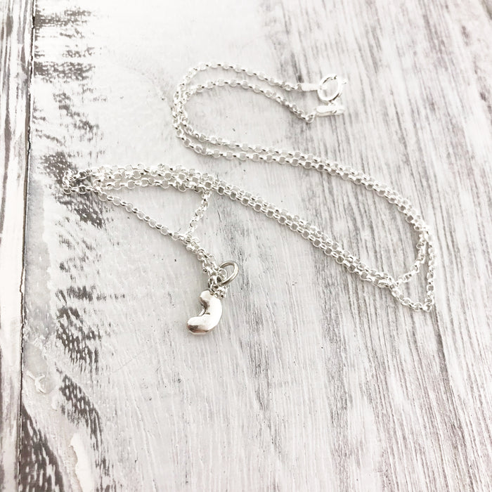 This dainty necklace is handcrafted featuring an detailed Sterling silver little bean charm attached to a delicate 16 inch, Sterling Silver cable chain with clasp. This tiny bean pendant measures 13 x 5mm. Necklace comes on a beautiful insert card, printed on high quality 110lb card stock.