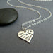 Say it simply, say it sweetly—this handcrafted sterling silver necklace features a heart-shaped charm stamped with the phrase “love you to the moon” alongside tiny stars and a crescent moon. It’s strung on an 18-inch sterling silver chain with a spring ring clasp for easy everyday wear.