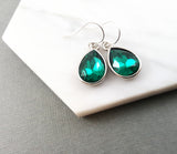 These earrings are handcrafted featuring sparkling teardrop birthstone crystals, set in shiny silver bezels and attached to Sterling silver ball ear wires. These earrings measure 1.25 inches long from top arch of ear wires. Earrings come with birthstone card insert.