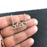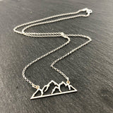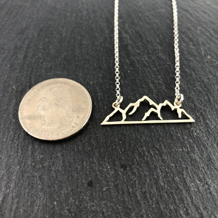 This dainty necklace is handcrafted featuring a detailed Sterling Silver Mountain Connector Charm attached to a delicate 18 inch, Sterling Silver cable chain with secure lobster claw clasp. Necklace comes on a beautiful insert card, printed on high quality 110lb card stock.