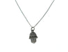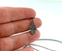 Comes with 18 inch oxidized Sterling silver chain with spring ring.   Pendant measures approximately one inch long including 5mm soldered jump ring.