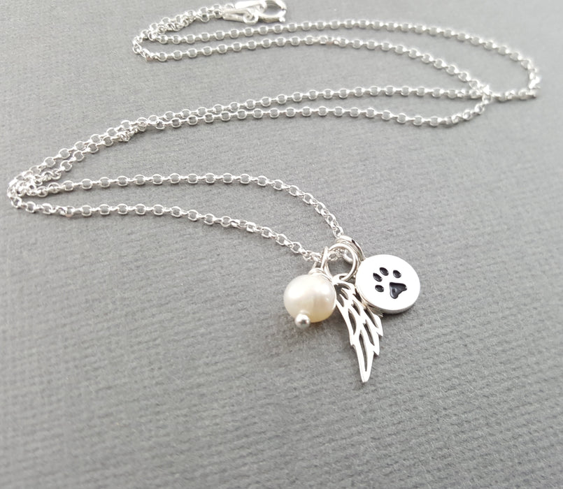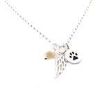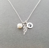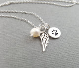 Paw Print Angel Wing Memorial Necklace - Pet Loss Necklace - Sterling Silver - Memorial Jewelry