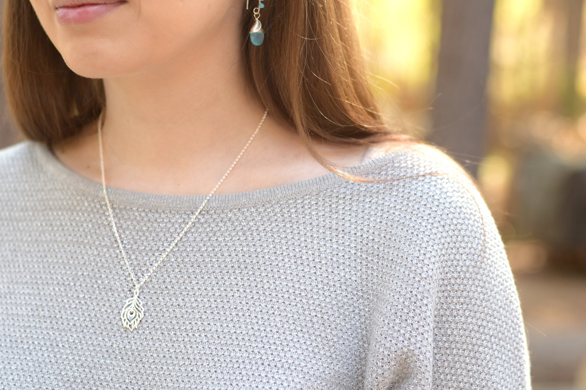 Peacock Feather Charm Necklace - Dainty Sterling Silver Jewelry
