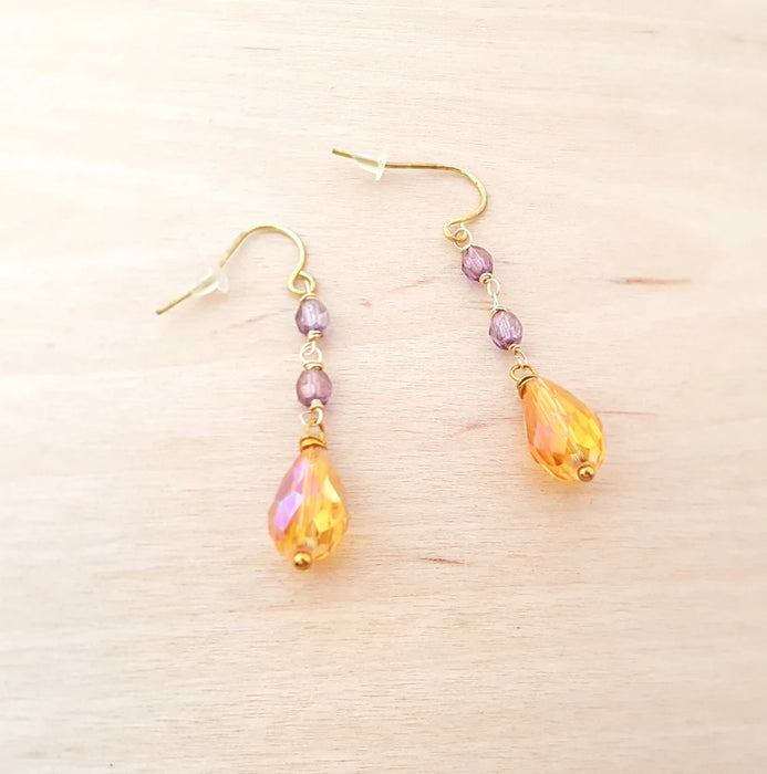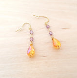 Purple & Orange Czech Glass Beaded Drop Earrings