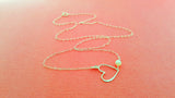 This necklace is handcrafted featuring a dainty sideways Sterling silver open heart charm adorned by a genuine freshwater pearl, wire wrapped tightly by hand. Made with Sterling silver cable chain, this necklace measures 18 inches long with secure spring ring clasp.