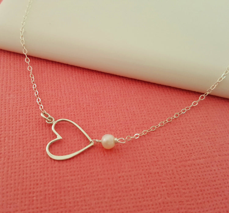 Sideways Heart Necklace - Freshwater Pearl Sterling Silver Necklace - Dainty Necklace - Valentines Necklace - Heart Jewelry - Gift for Her