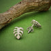 Sterling Silver Monstera Stud Earrings 10x8mm