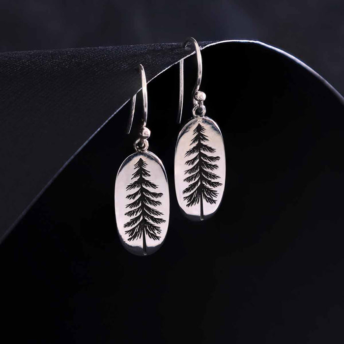 These sterling silver oval pine tree dangle earrings feature one of the most majestic trees of all time. Pine trees are cultural symbols the world over, representing fertility, wisdom and longevity. They are symbols of peace, and wherever pine trees grow, it will always spread love and hope, and become the stuff of legends.