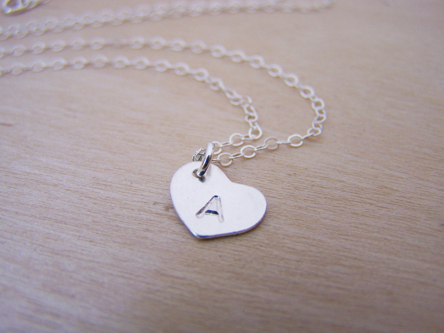 Sterling Silver Tiny Heart Hand Stamped Initial Personalized Necklace