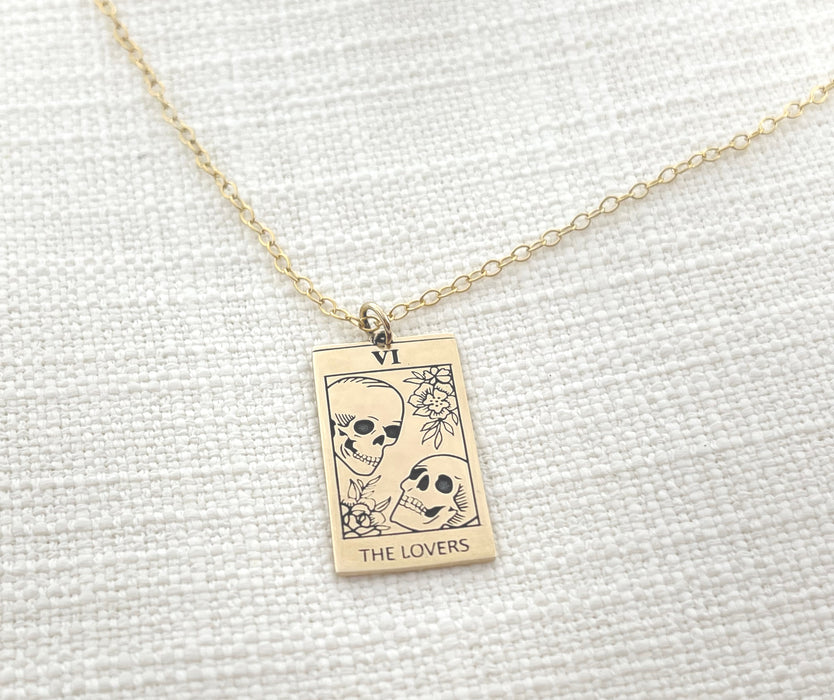 Tarot Card The Lovers Charm - 14k Gold Filled Necklace - Handmade Jewelry