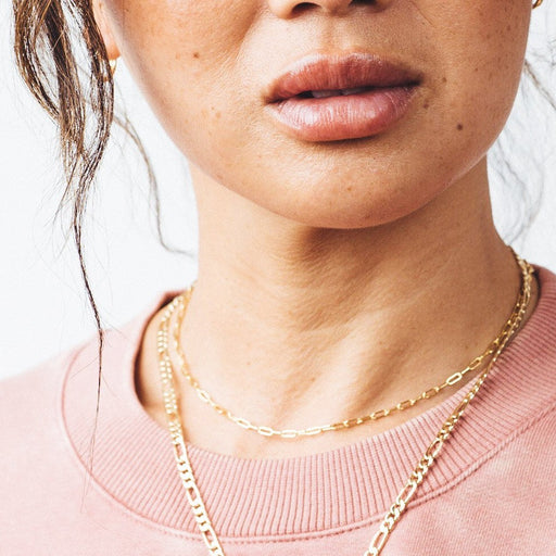 The Tiny Paperclip Chain Necklace is just what your jewelry collection is missing. Sophisticated and modern in design, this necklace is available in multiple chain sizes so you can choose the look that fits your style. Made with 18k gold over Stainless steel chain and 14k gold filled lobster clasp.