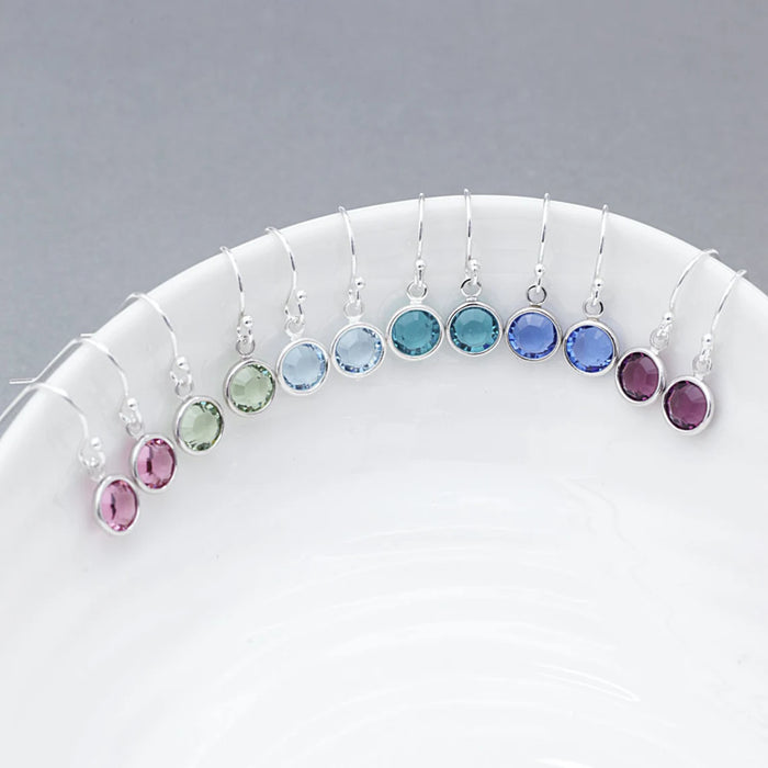 These tiny birthstone earrings are the perfect everyday sparkle. Each pair features a 6mm Swarovski crystal in your chosen birthstone, bezel-set and dangling from sterling silver ear wires. Lightweight, minimal, and full of meaning.
