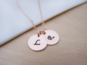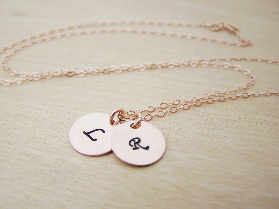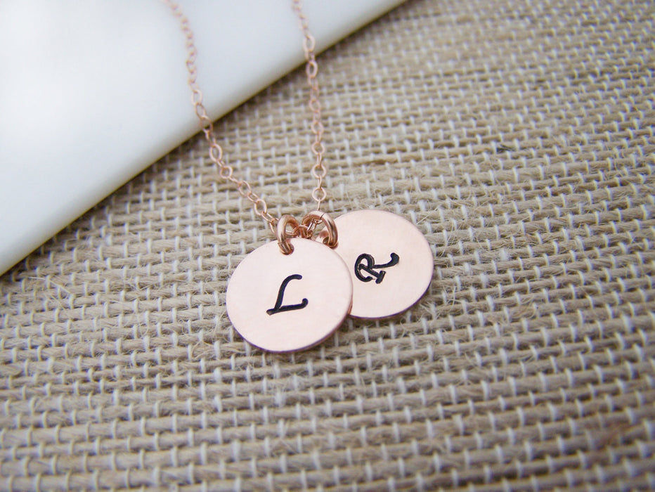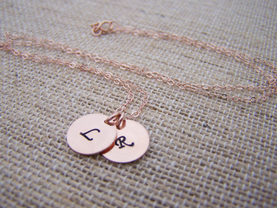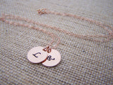 TWO INITIAL Disc Dainty Rose Gold Hand Stamped Initial Personalized Bridesmaid Necklace